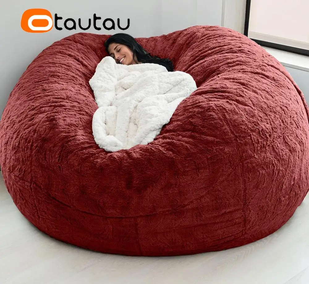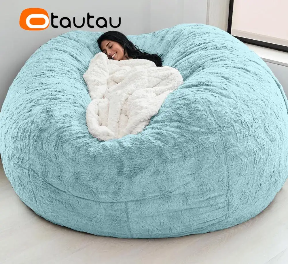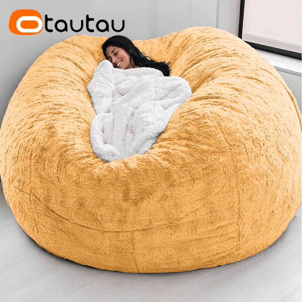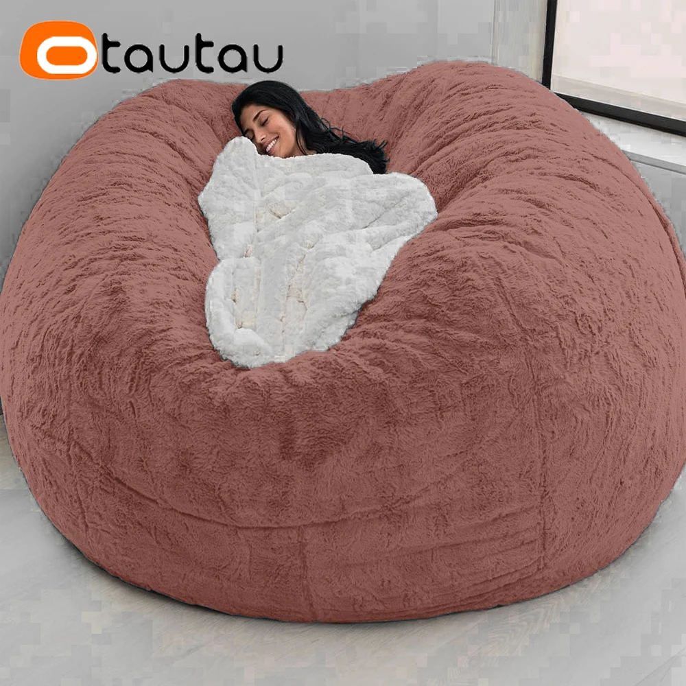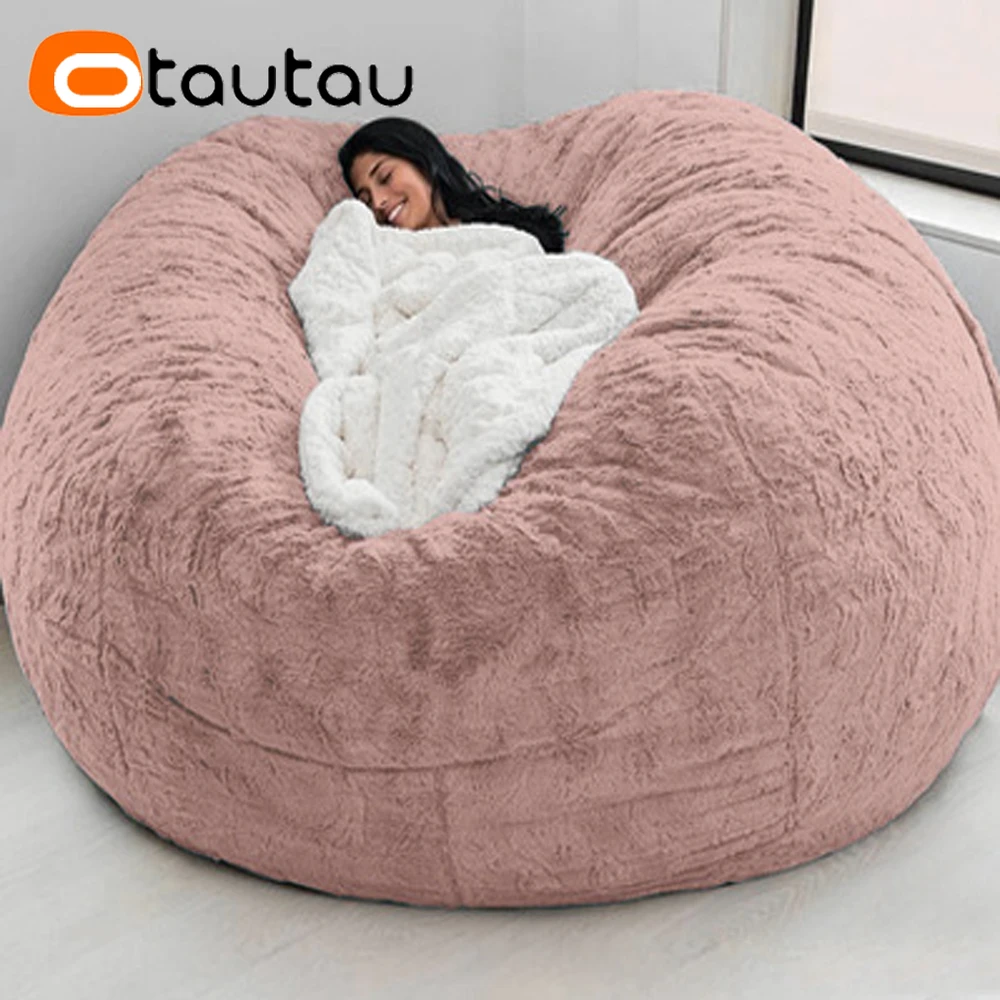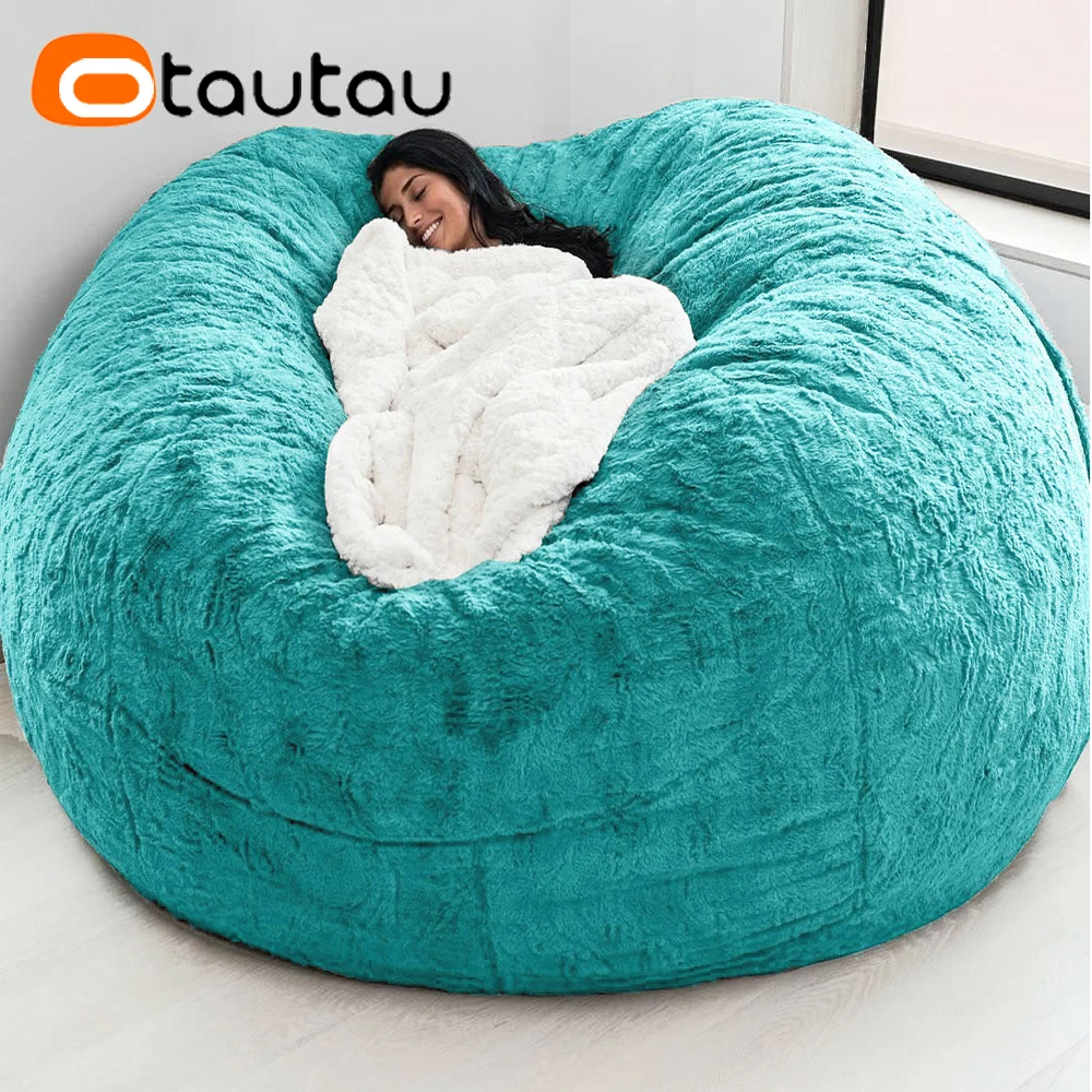 OTAUTAU Dropshipping 4/5ft Giant Bean Bag Cover Fluffy Faux Fur Pouf Couch Beanbag Sofa Sac Relax Recliner Chair DD003